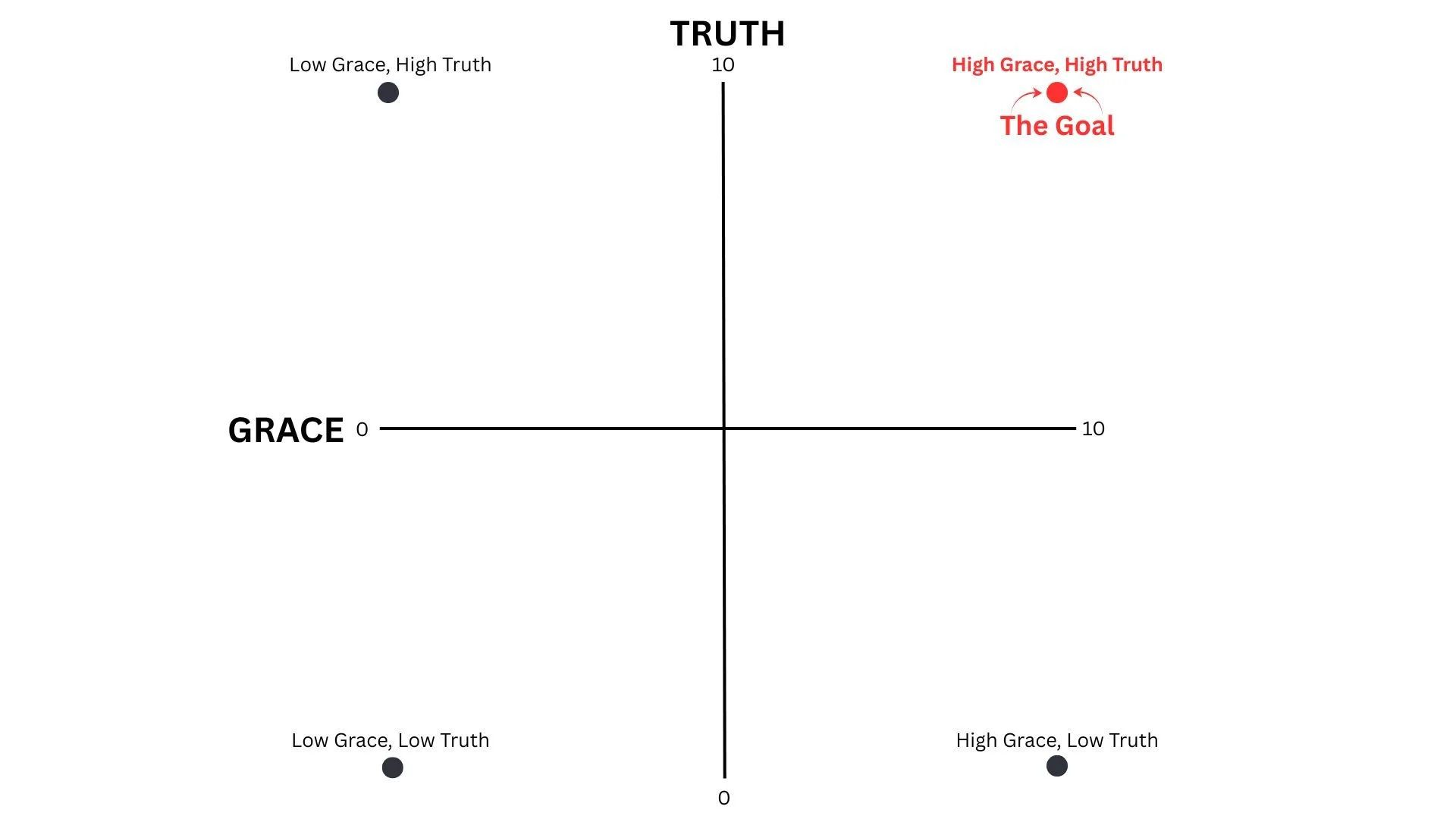 Throughout our “What’s the Difference?” series, we are prayerfully learning to live in HIGH Grace and HIGH Truth, the upper right quadrant of the graphic above. We're praying for humility and surrender to be evident in our approach over the next 8 weeks and beyond.