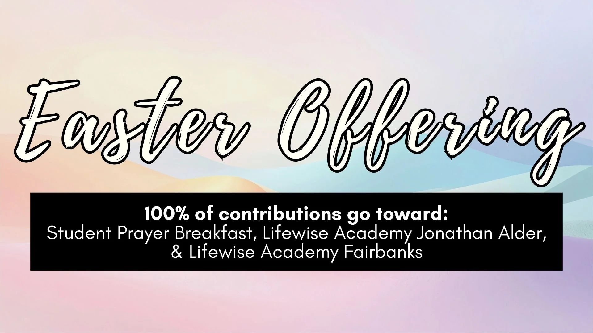 Our annual Easter Offering is in full swing, and 100% of it goes to three amazing ministries: Student Prayer Breakfast, Lifewise Academy Fairbanks, and Lifewise Academy Jonathan Alder.